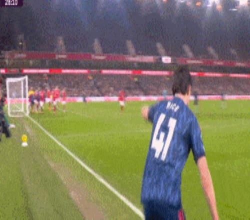 第72分钟,赖斯任意球斜传禁区,梅里诺甩头攻门稍稍顶偏。