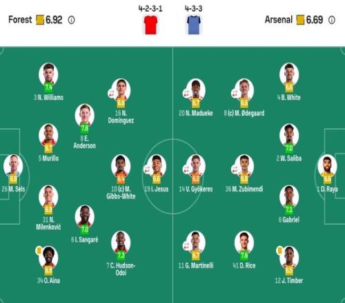 森林首发:26-塞尔斯、5-穆里略、31-米伦科维奇、34-埃纳、6-桑加雷、8-埃利奥特-安德森、10-吉布斯-怀特、16-多明戈斯(89'21-哈钦森)、7-奥多伊、19-伊戈尔-热苏斯(76'14-恩多耶)、3-内科-威廉姆斯