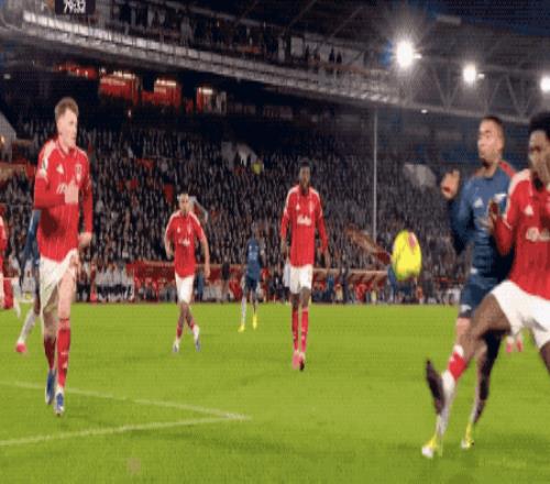 第80分钟,替补登场的热苏斯扰乱森林防线,埃纳禁区内手球,VAR介入,泰勒认定没有点球。