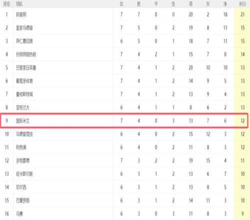 由于主场输给阿森纳,国米前7轮过后拿到12分,目前在欧冠排名第9,哪怕下一轮能够在客场战胜多特,国米也大概率要踢附加赛。不过就算他们能晋级淘汰赛,国米本赛季也很难走远,以他们的实力,欧冠争冠基本无望。万一在附加赛遇到强队,国米随时会提前出局。